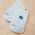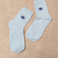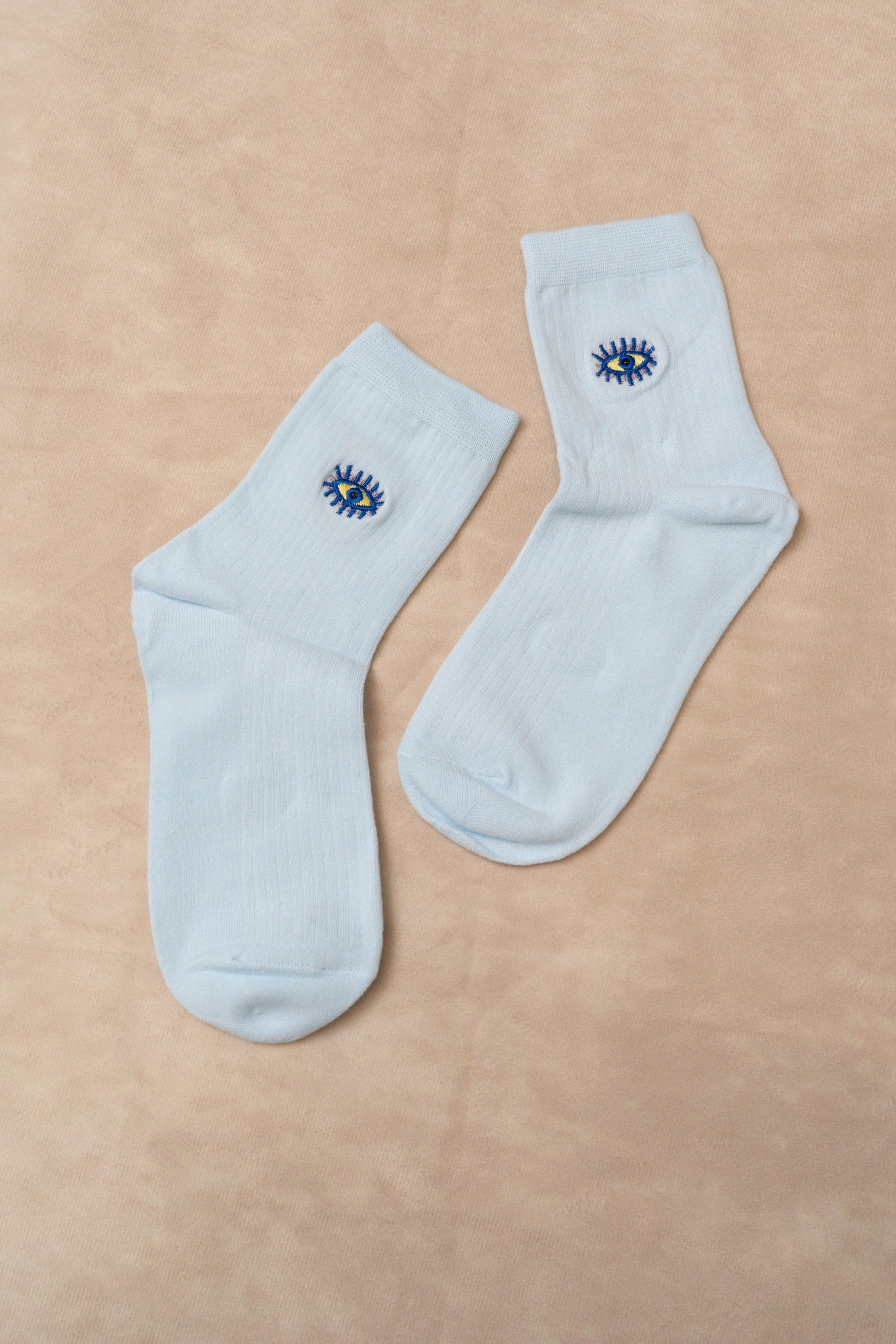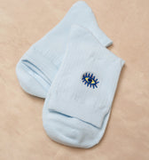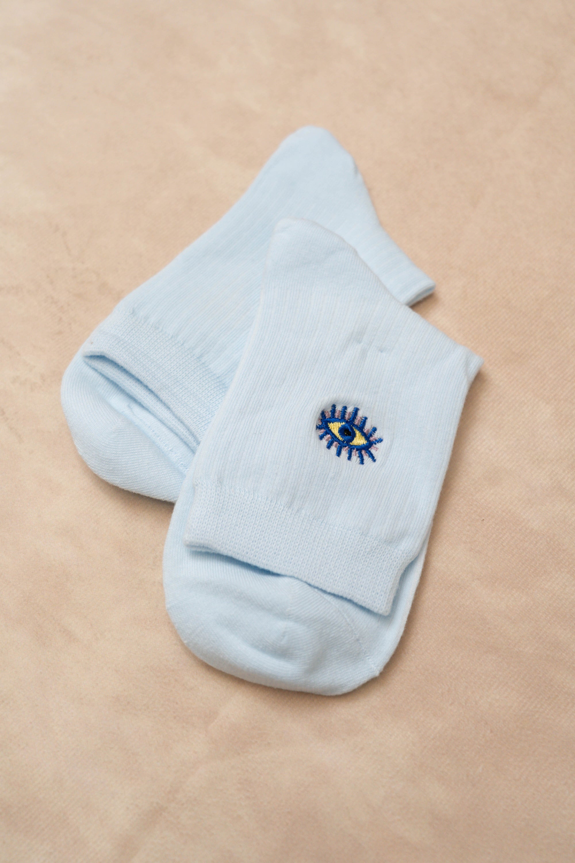 Meias 100% algodão em tom cor azul com bordado de um evil eye - Que na mitologia grega tem um significado de proteção.