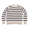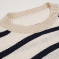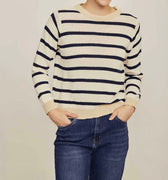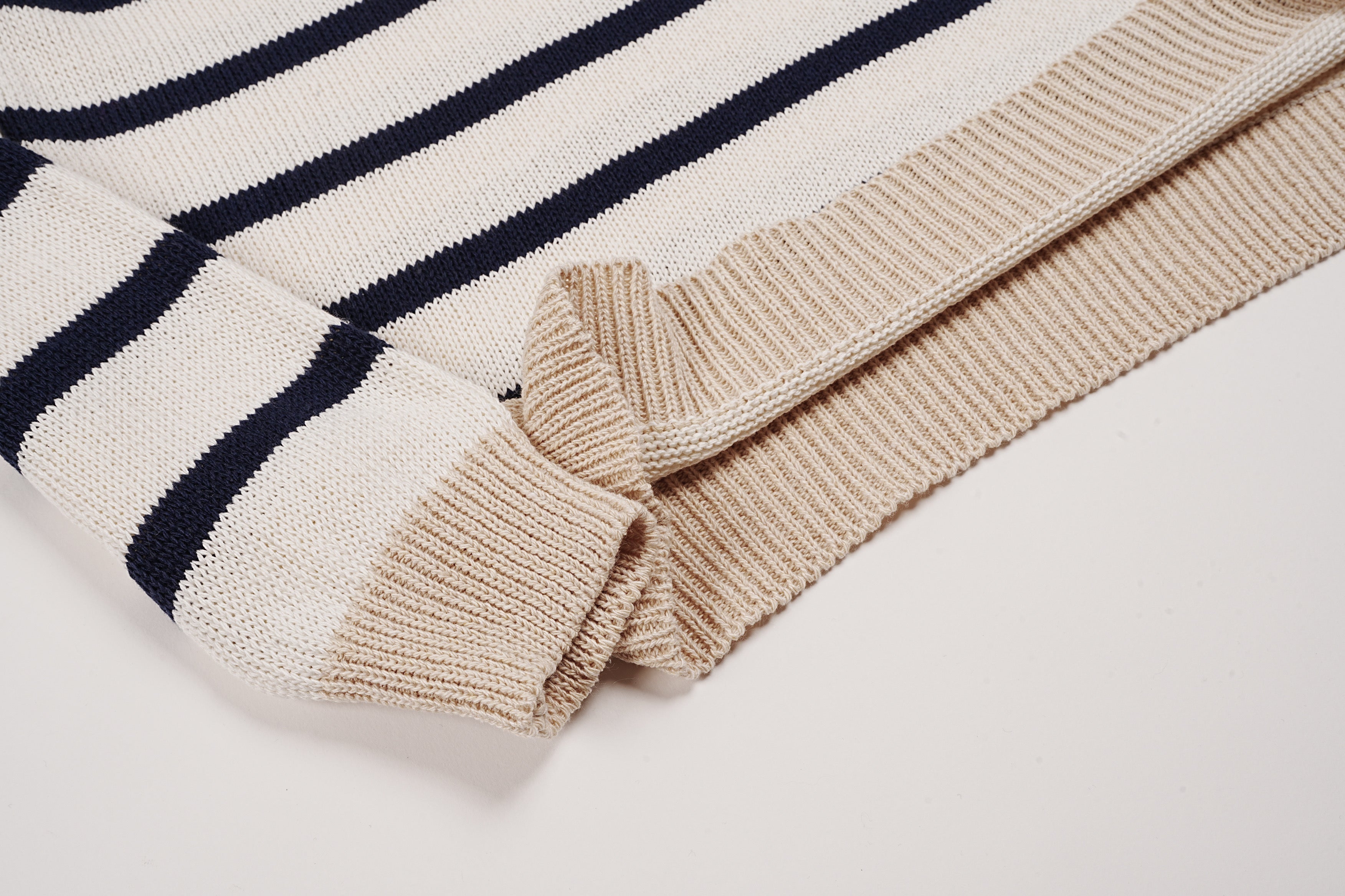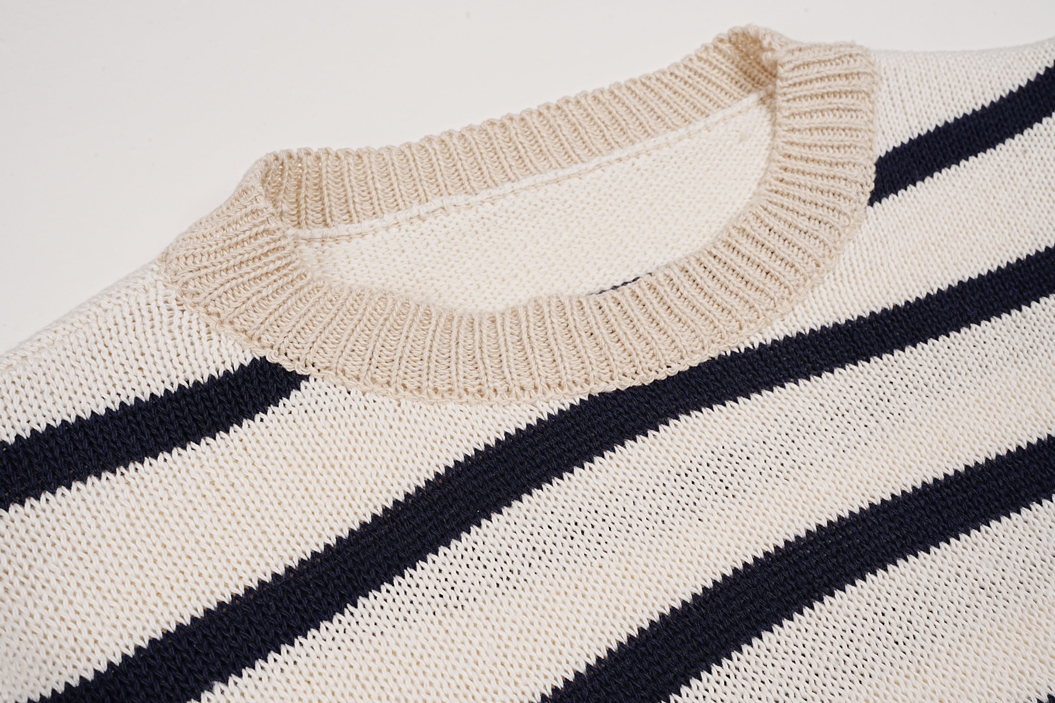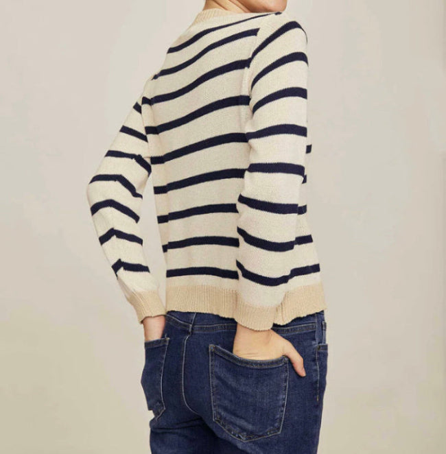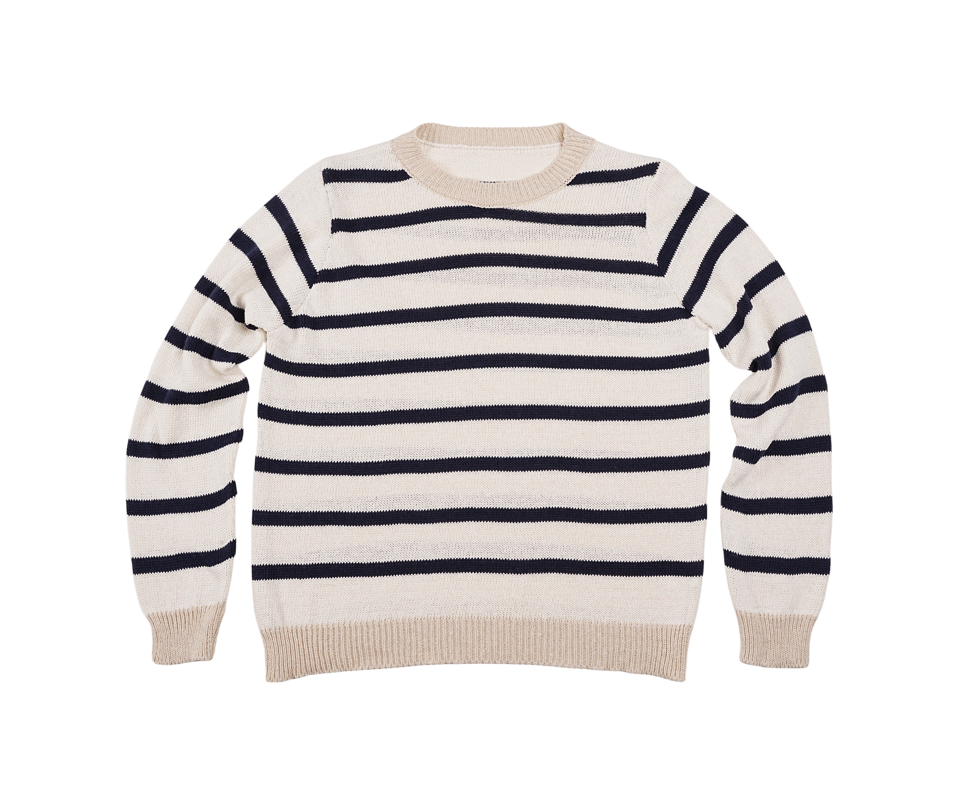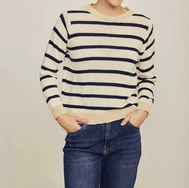 Camisola às riscas azuis escuras em malha fina de algodão.