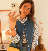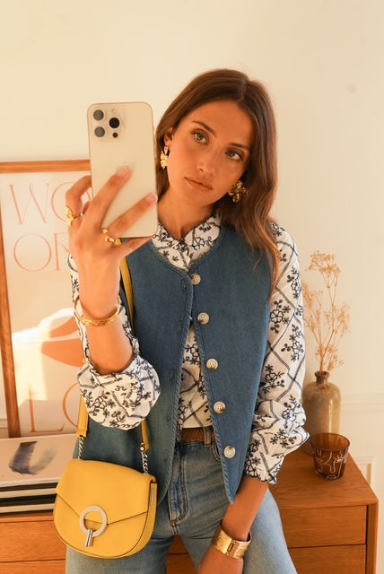 Este colete é uma peça chave para a transição entre os dias mais frescos e a chegada da Primavera. Em denim de algodão é a peça mais versátil do seu closet.