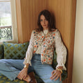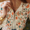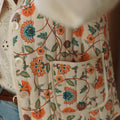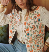 Este colete é a chave para a transição entre os dias mais frescos e a chegada da Primavera. Com um padrão floral em tons laranja e verde é a peça perfeita para colocar em cima de uma camisa ou t-shirt e dar um upgrade ao seu look!.