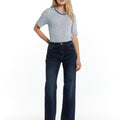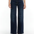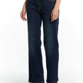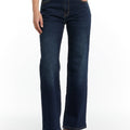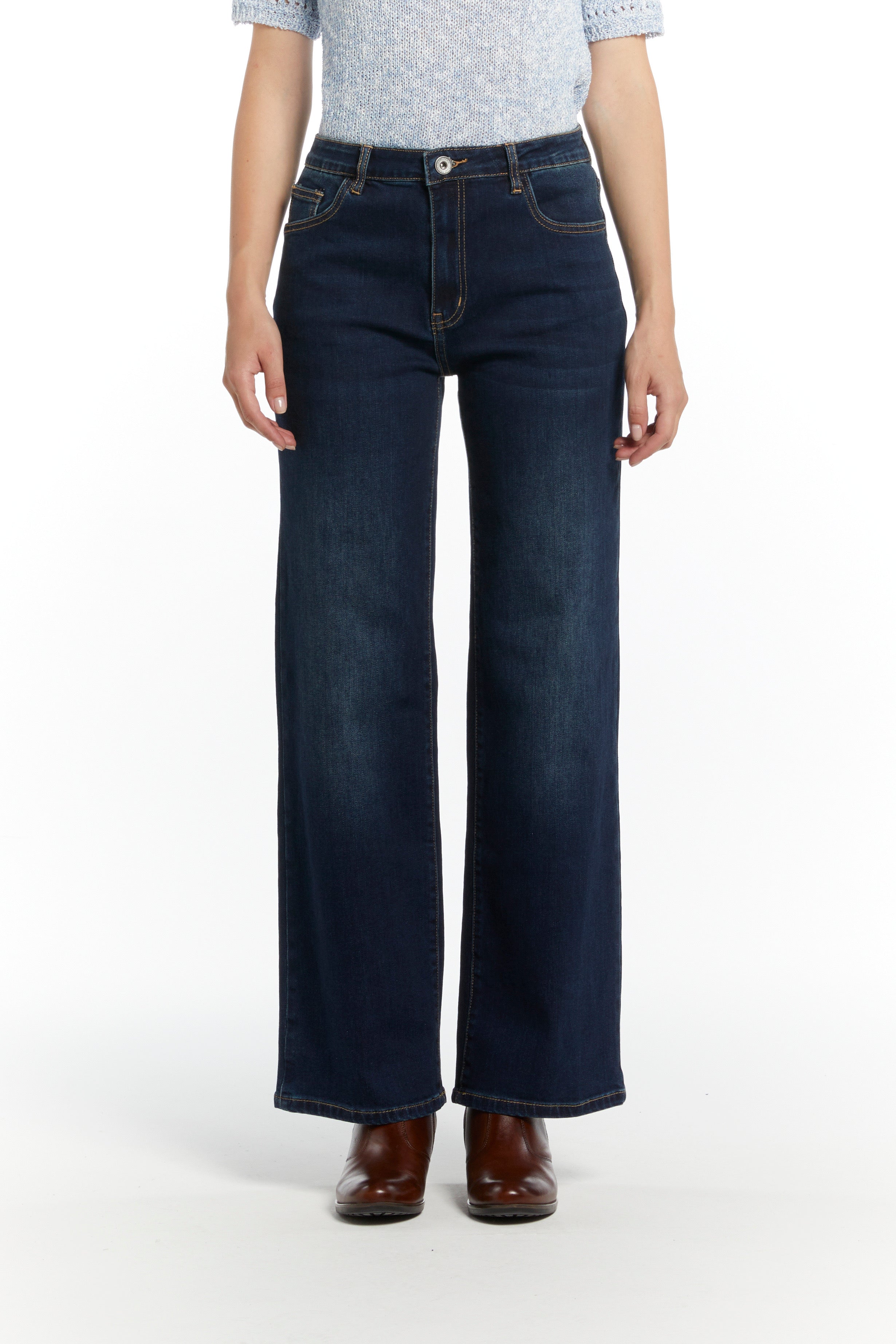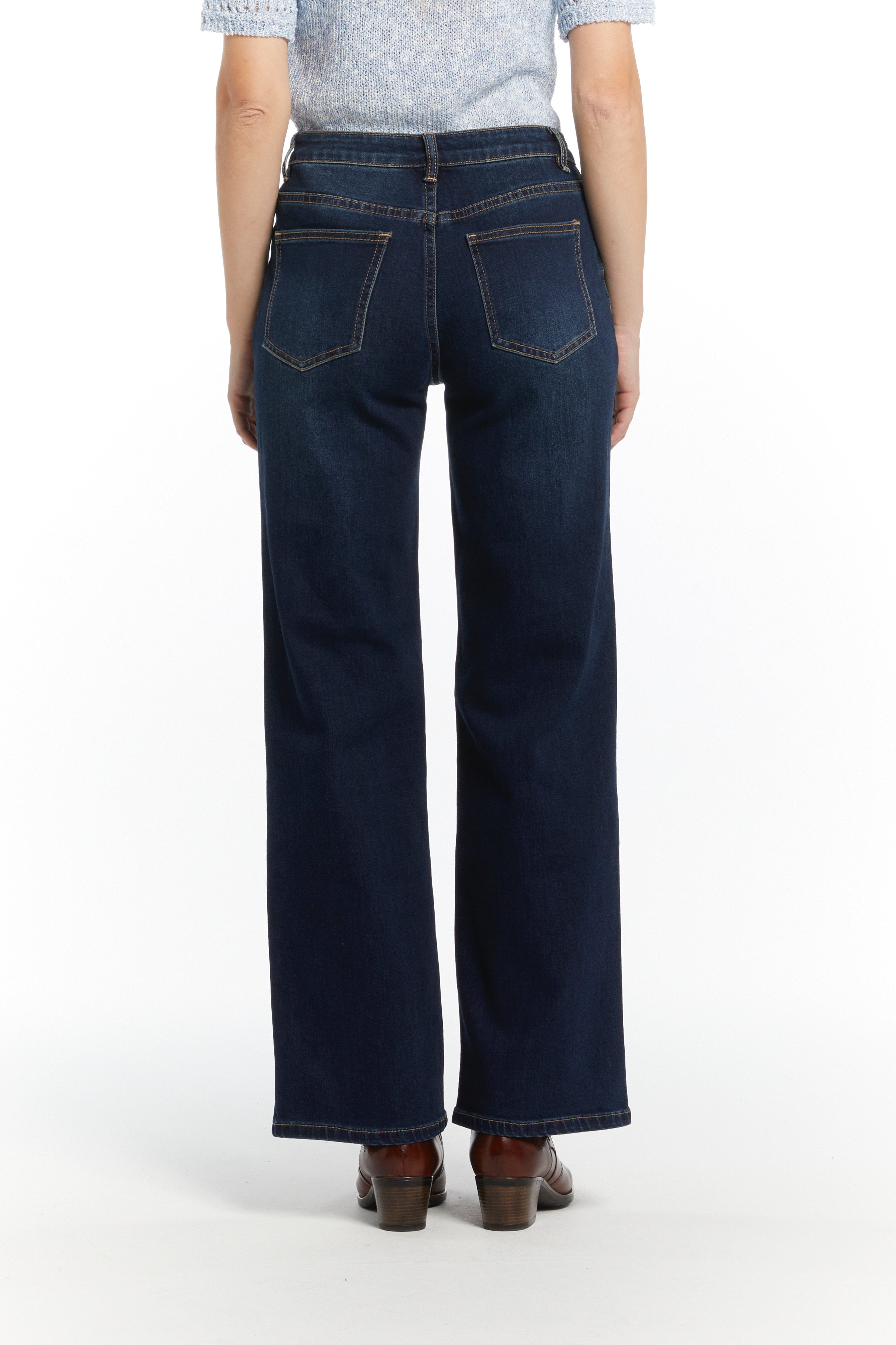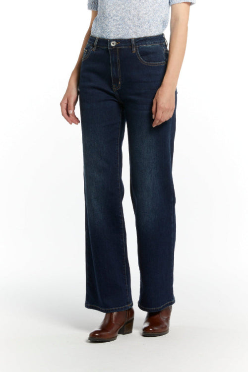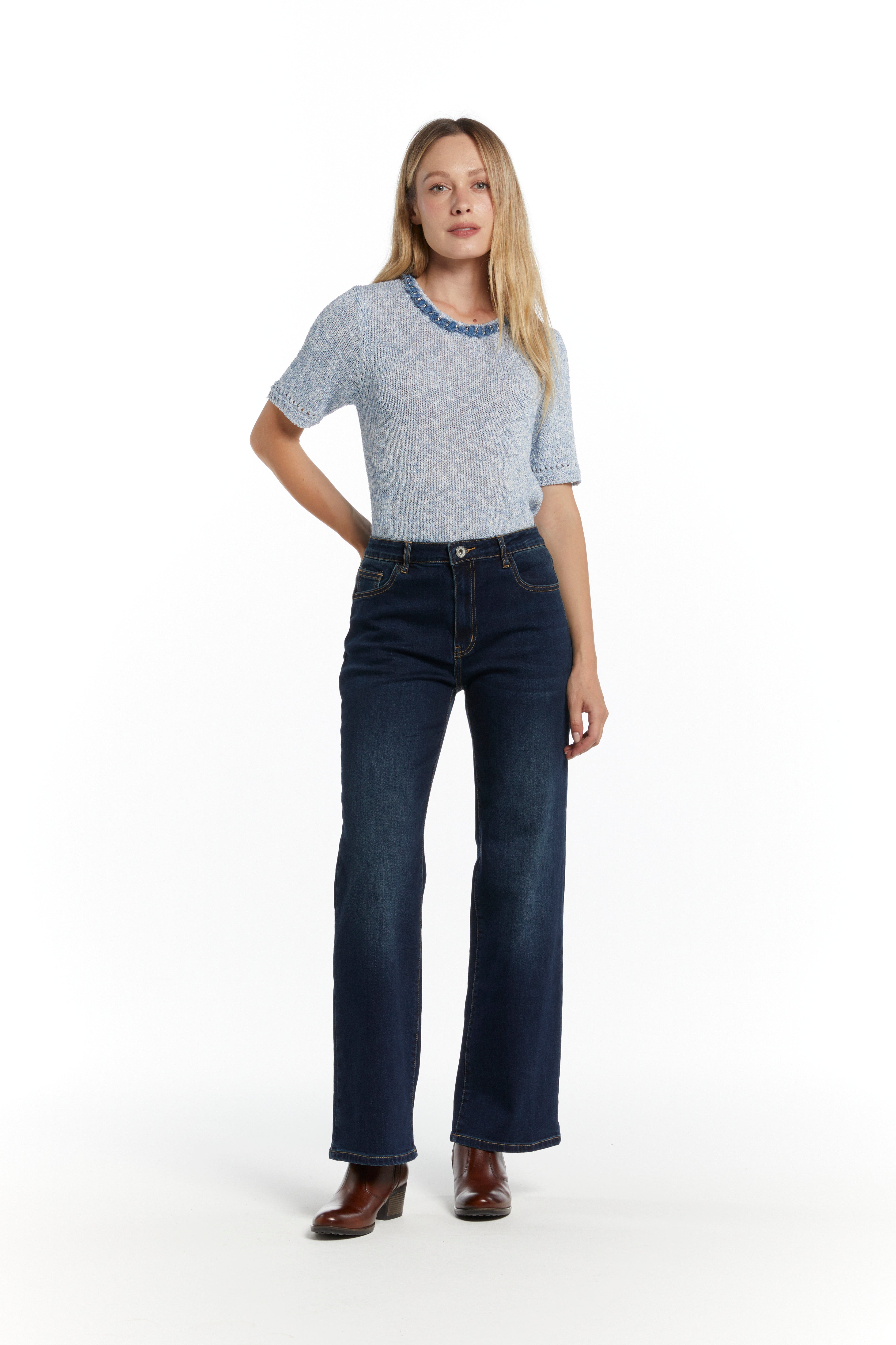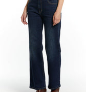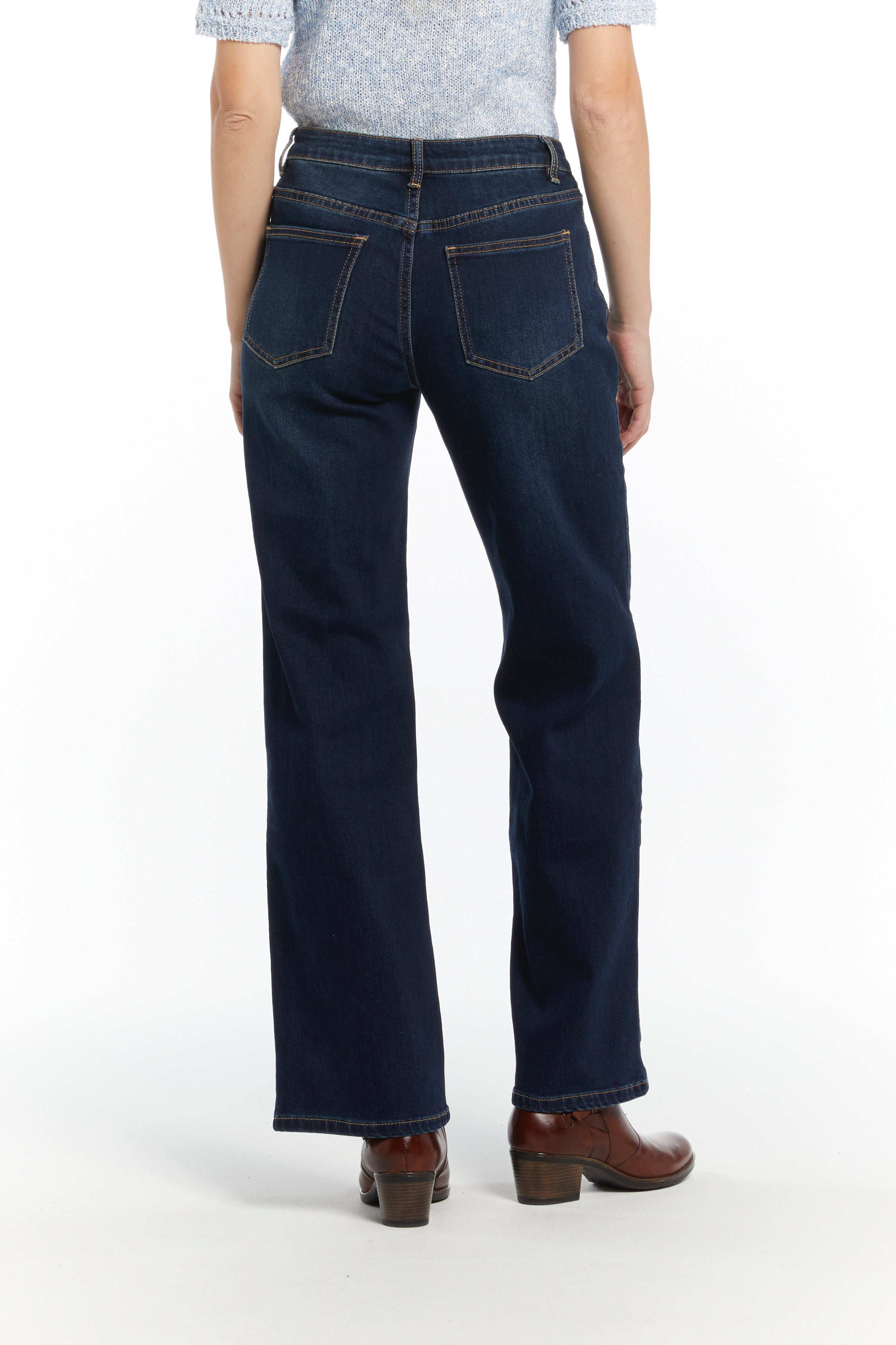 Calças de ganga em algodão orgânico com um corte direito e cintura subida.