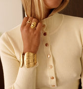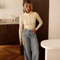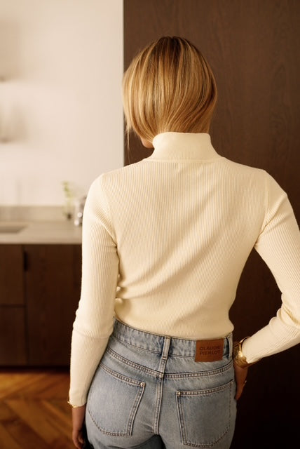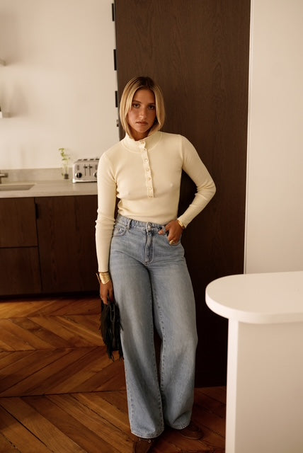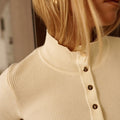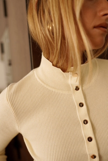 Malha essencial com botões dourados e em meia gola. Combine com uns jeans.