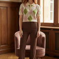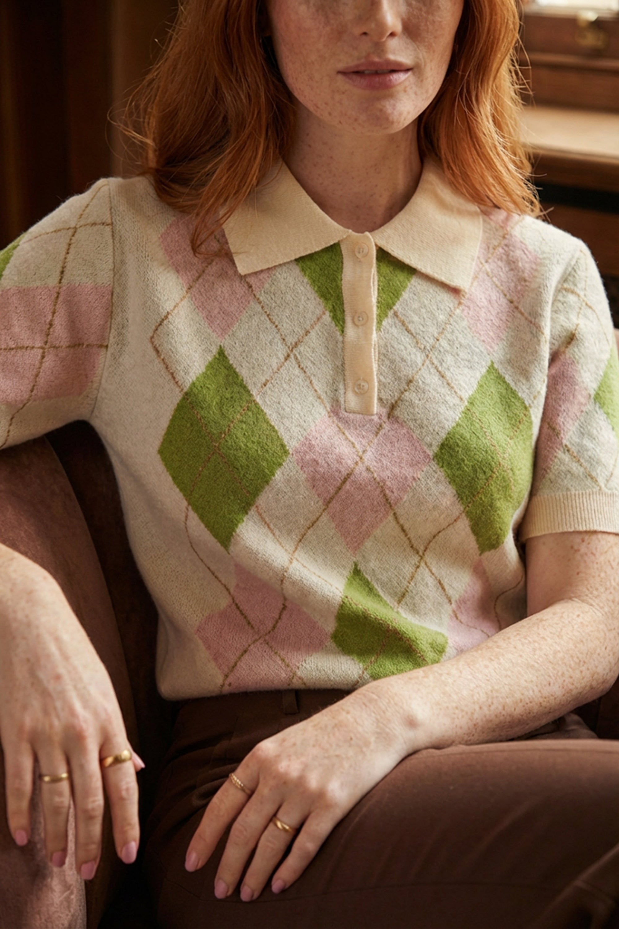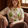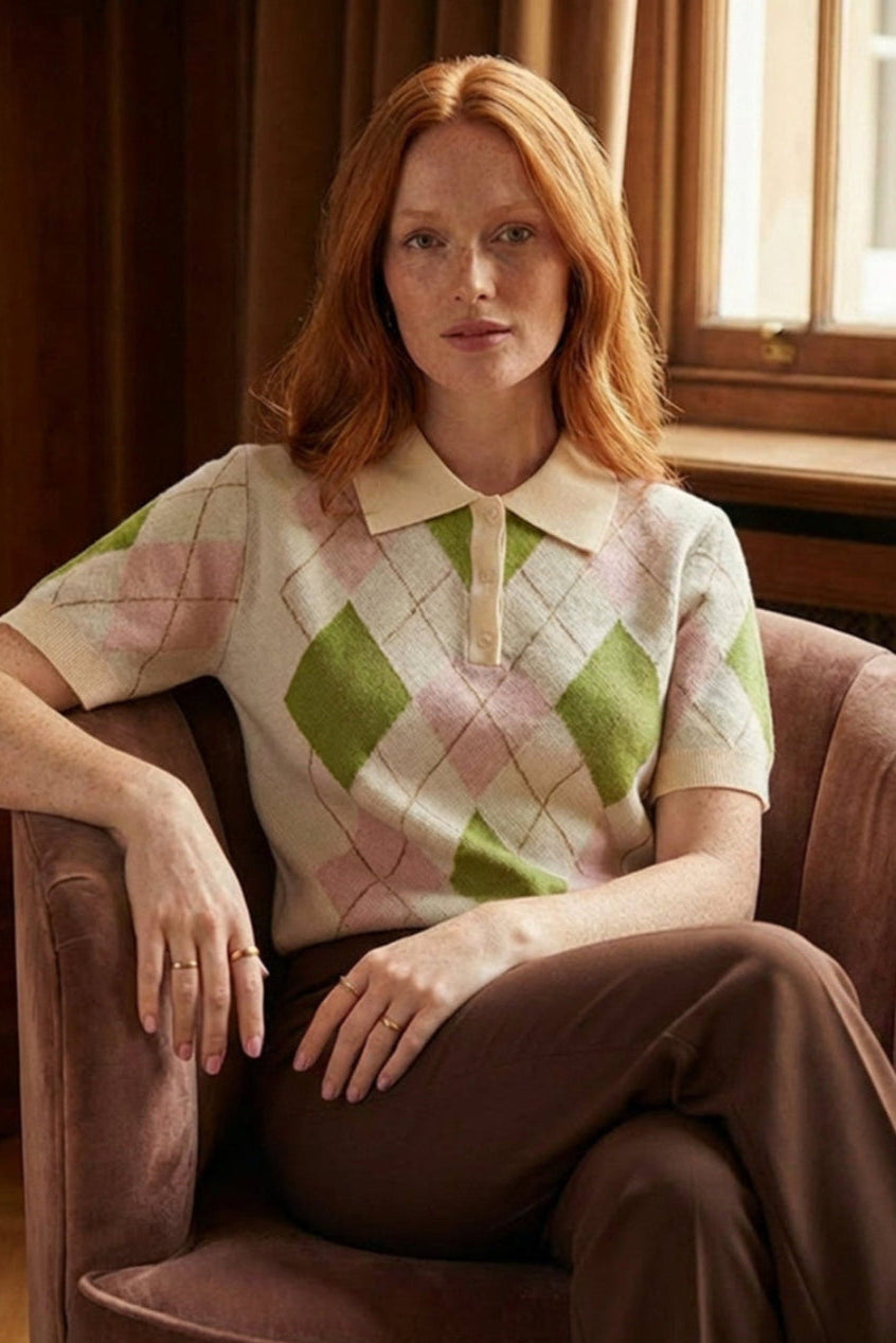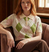 Polo de malha muito macia com mangas curtas em tons de xadrez suaves e muito bonitos.