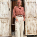 Camisa 100% algodão com um corte romântico e ideal para o início da nova estação. É uma peça MUST HAVE este Outono.
