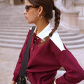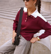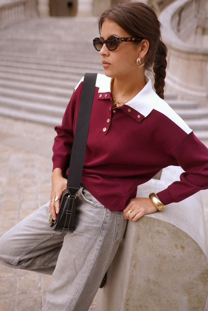 Polo com botões dourados. É tamanho único, largo e com os ombros descaídos. Combine com uns jeans cinzentos ou pretos e voilá! Pronta para começar o Outono 🍂
