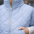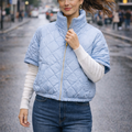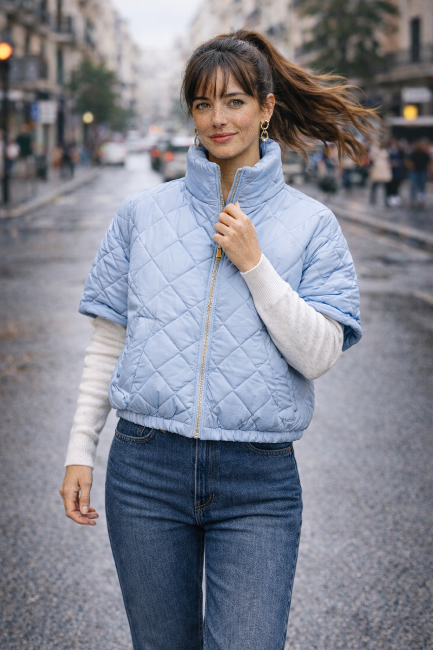 Bomber impermeável com mangas curtas para completar o seu look em dias frios com cores super suaves e light.